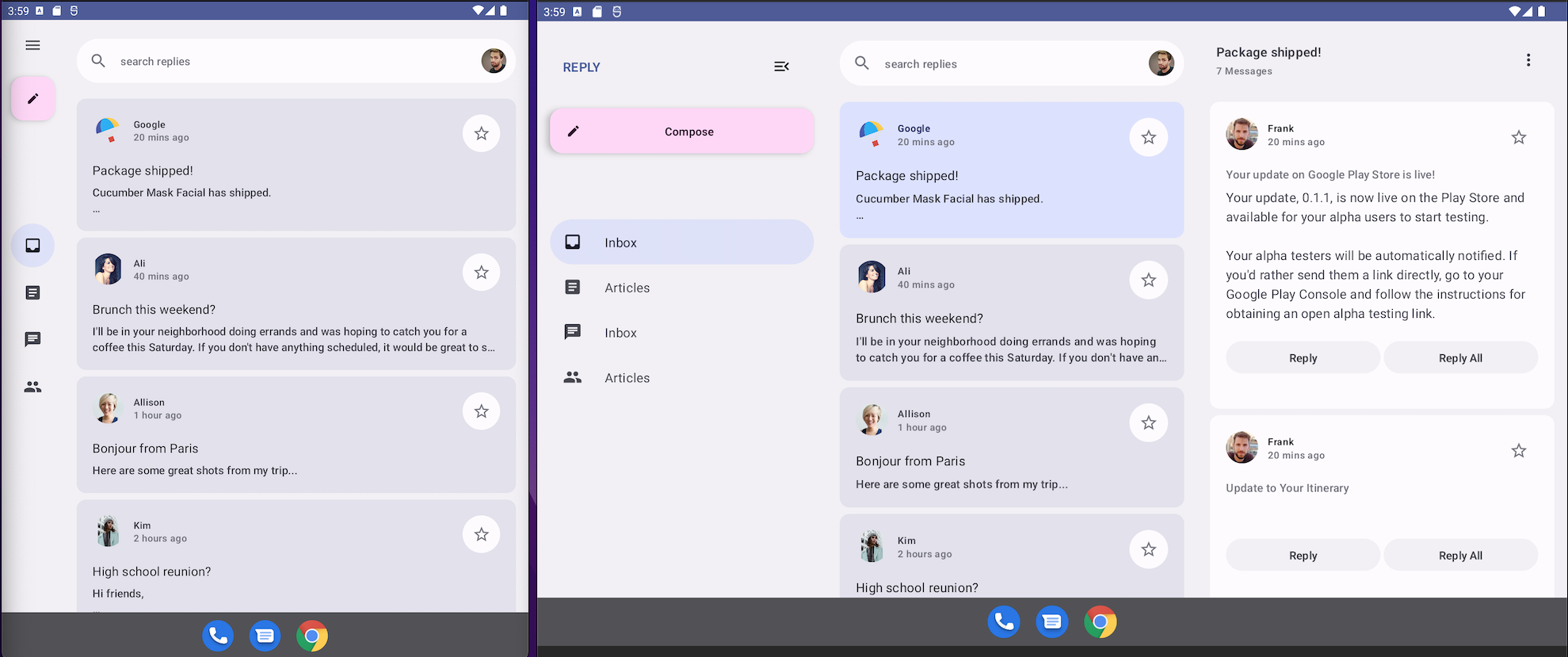 This sample is a [Jetpack Compose][compose] implementation of [Reply][reply], a material design study for adaptive design.